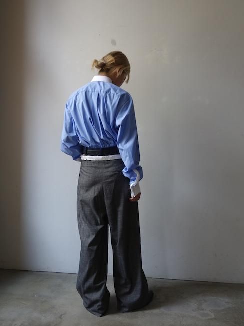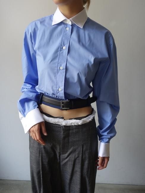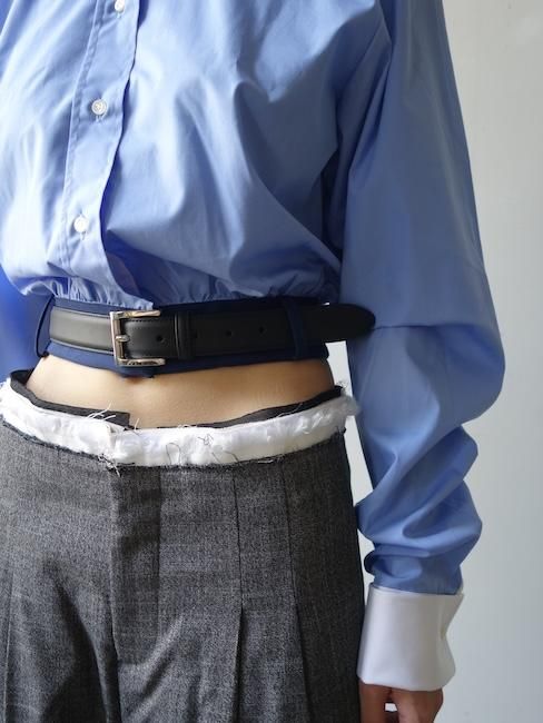 JULIE KEGELS CALA ・短丈シャツ ・バルーンシルエット ・カラー/カフス/裾切り替えデザイン ・フロントボタン/ウエストスナップ仕様 ・裾にベルトループ ・取り外し可能なレザーベルト <カラー> BLUE <素材> 本体:コットン100% ベルト:本革 *30度以下の水温で洗濯、またはドライクリーニング表記 <サイズ> 34/肩幅45cm、身幅50.5cm(ウエストまわり72cm)、着丈49cm、袖丈67cm 36/肩幅46cm、身幅55.5cm(ウエストまわり74cm)、着丈49cm、袖丈68cm ・平置きで計測。多少の誤差がでる場合がございます。 ・着用者の身長164cm(34サイズ着用) 【JULIE KEGELS】/ ジュリー ケグルズ ベルギーのファッションブランド。 アントワープ卒業後、MERYLL ROGGE (メリル ロッゲ) やAlaïa(アライア)でインターンシ ップを経験した後、自身のブランドを設立。 特定の型にはまらず、時代の影響や自身のノスタルジックな記憶をインスピレーション源に、ファッションの変革的なパワーによって独自の世界観が作り上げられた。裏腹な要素をあわせ持つユニークな新鋭ブランド。 JULIE KEGELS商品一覧へ <商品の返品交換について> 不良品以外の返品交換はお断りさせていただいています 商品について不安な点などございましたらご購入前にご質問ください 商品に不良があった場合には商品到着後3日以内にメールかお電話でご連絡ください <高額商品のお支払い決済について> 10万円以上の商品をお買い上げ時、代金引換のご利用ができません。 PAYPALもしくは銀行振込がご利用いただけます。 銀行振込をご希望の場合は ご購入希望商品を記載の上、visitfor@gmail.comまでご連絡ください。