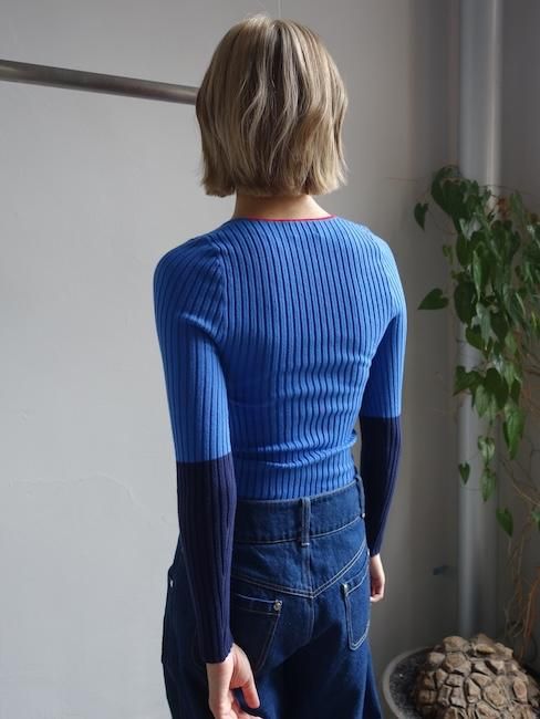 GIU GIU NONNA V ・リブニット ・Vネック ・バックネックにレッドカラー ・袖切り替えカラー ・伸縮性 <カラー> BLOCKS <素材> コットン87%、ナイロン12%、ポリウレタン1% <サイズ> S/肩幅22cm~、身幅18cm~、着丈54cm~、袖丈56cm M/肩幅23cm~、身幅22cm~、着丈56cm~、袖丈58cm ・平置きで計測。多少の誤差がでる場合がございます。 ・着用者の身長164cm(Sサイズ着用) 【GIU GIU】/ジュウジュウ マサチューセッツ州ボストン生まれ。 現在はフランスと日本をベースにノスタルジックな視点で、年齢や性別に囚われない マインドフルなライフスタイルを提案している。 GIU GIU商品一覧へ <商品の返品交換について> 不良品以外の返品交換はお断りさせていただいています 商品について不安な点などございましたらご購入前にご質問ください 商品に不良があった場合には商品到着後3日以内にメールかお電話でご連絡ください