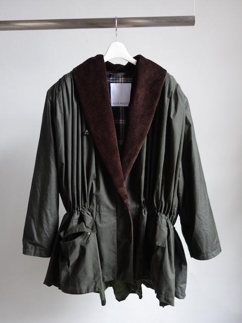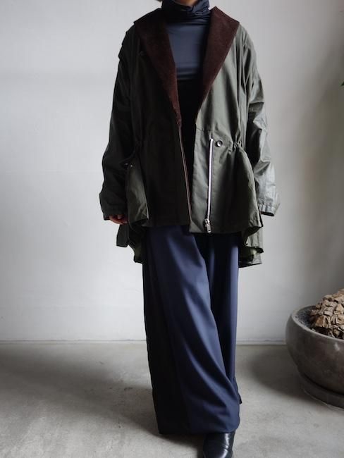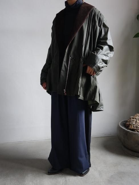 JULIE KEGELS MIES ・フロントボタン ・ショールカラー ・ドロップシルエット ・フロントポケット ・ウエスト内側にドローコード ・パラフィン加工 ・コットン素材 <カラー> GREEN <素材> コットン100% *ドライクリーニング表記 <サイズ> 36/肩幅50cm、身幅~90cm、着丈87cm、袖丈58cm ・平置きで計測。多少の誤差がでる場合がございます。 ・着用者の身長164cm 【JULIE KEGELS】/ ジュリー ケグルズ ベルギーのファッションブランド。 アントワープ卒業後、MERYLL ROGGE (メリル ロッゲ) やAlaïa(アライア)でインターンシ ップを経験した後、自身のブランドを設立。 特定の型にはまらず、時代の影響や自身のノスタルジックな記憶をインスピレーション源に、ファッションの変革的なパワーによって独自の世界観が作り上げられた。裏腹な要素をあわせ持つユニークな新鋭ブランド。 JULIE KEGELS商品一覧へ <商品の返品交換について> 不良品以外の返品交換はお断りさせていただいています 商品について不安な点などございましたらご購入前にご質問ください 商品に不良があった場合には商品到着後3日以内にメールかお電話でご連絡ください <高額商品のお支払い決済について> 10万円以上の商品をお買い上げ時、代金引換のご利用ができません。 PAYPALもしくは銀行振込がご利用いただけます。 銀行振込をご希望の場合は ご購入希望商品を記載の上、visitfor@gmail.comまでご連絡ください。