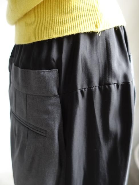 LUTZ HUELLE LOW PANTS ・ワイドパンツ ・異素材ドッキングデザイン ・ウエストゴム ・フロントタック ・3ポケット <カラー> GREY &BLACK <素材> 本体/ウール100% 別布/レーヨン100% 袋地/コットン100% *ドライクリーニング表記 <サイズ> XS/ウエスト60~90cm、ヒップ110cm、股上40cm、全長70cm ・平置きで計測。多少の誤差がでる場合がございます。 ・着用者の身長164cm 【LUTZ HUELLE】/ルッツ ヒュエル ルッツ・ヒュエル(Lutz Huelle)はドイツのケルン近くの村に生まれる。セントマーチンズを95年卒業。卒業後95年からマルタン マルジェラのアトリエのパリのアトリエで研修生となる。後にマルジェラのアシスタントを務める。ここでニットと「アルティザン風ライン(ヴィンテージものや有り合わせのものを使用したデザイン)」の作成を主に手伝う。 2000年自身の会社を設立し、初めてのウィメンズコレクションを2000A/Wパリで発表。 ルッツのファッションの特徴は伝統的なスタイルを基盤におきながらも、想像もできないようなデザインや装飾の要素を取り入れる。 LUTZ HUELLE商品一覧へ <商品の返品交換について> 不良品以外の返品交換はお断りさせていただいています 商品について不安な点などございましたらご購入前にご質問ください 商品に不良があった場合には商品到着後3日以内にメールかお電話でご連絡ください <高額商品のお支払い決済について> 10万円以上の商品をお買い上げ時、代金引換のご利用ができません。 PAYPALもしくは銀行振込がご利用いただけます。 銀行振込をご希望の場合は ご購入希望商品を記載の上、visitfor@gmail.comまでご連絡ください。