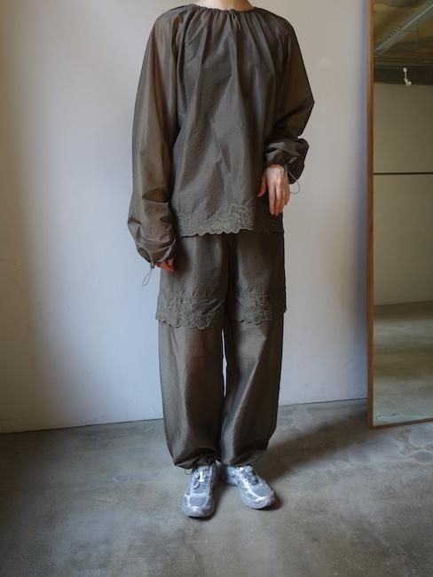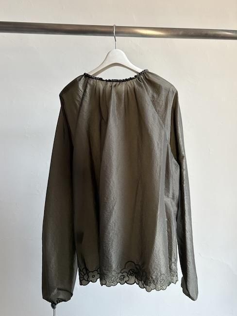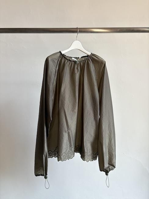 CECILIE BAHNSEN BRODY TOP EMBROIDERED RIPSTOP ・クルーネック ・ネック/袖コード ・裾口にフラワーモチーフの刺繍デザイン ・リラックスシルエット ・透け感 ・ポリアミド素材 <カラー> OLIVE <素材> ポリアミド% *ドライクリーニング表記 <サイズ> 6/ゆき丈92cm、身幅61cm、着丈62cm ・平置きで計測。多少の誤差がでる場合がございます。 ・着用者の身長162cm、9,10枚目着用者175cm 【CECILIE BAHNSEN】/セシリーバンセン デンマーク出身のデザイナーCecilie Bahnsenは、名門ロイヤル・カレッジ・オブ・アートでウィメンズ デザインの修士号を取得し、John Gallianoの元でプリントデザイナーとしての経験を積んだのち、自身の名を冠したウィメンズウェアのブランドを 2015 年に立ち上げた。 地元コペンハーゲンで手作業で生産されており、キルティング、パッチワークといった伝統的手法を取り入れた独自の製法で生み出される生地を使い、細部にまでこだわり抜いて作られている。 女性らしさと無駄のない洗練さを絶妙なバランスで兼ね添えたコレクションは、緻密な装飾がほどこされたアイテムが、時代に左右されないデザイン性と伝統的なシルエットを現代的に再構築しています。 CECILIE BAHNSEN 商品一覧へ <商品の返品交換について> 不良品以外の返品交換はお断りさせていただいています 商品について不安な点などございましたらご購入前にご質問ください 商品に不良があった場合には商品到着後3日以内にメールかお電話でご連絡ください <高額商品のお支払い決済について> 10万円以上の商品をお買い上げ時、代金引換のご利用ができません。 PAYPALもしくは銀行振込がご利用いただけます。 銀行振込をご希望の場合は ご購入希望商品を記載の上、visitfor@gmail.comまでご連絡ください。