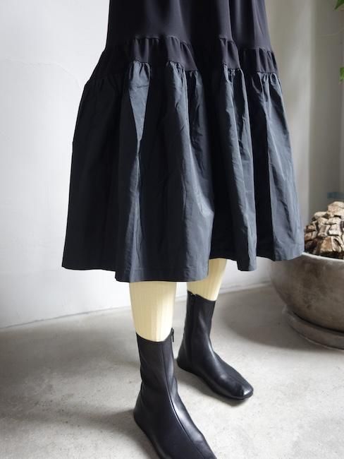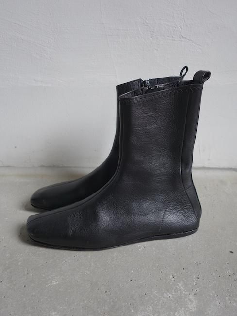DUBIE TECNO FLAT ・フラットブーツ ・スクエアトゥ ・バンプにセンターシーム ・サイドジップ ・タイトフィット ・レザー素材 <カラー> BLACK <素材> ナッパレザー <サイズ> 36(22.5~23cm) 37(23.5~24cm) 38(24.5~25cm) 39(25.5~26cm) 39サイズSOLD OUT 【DUBIE】/ドゥビー セントラル・セント・マーチンズとニコラス・カークウッドを卒業後、2012年にAgustina Dubié によってブエノスアイレスで設立したブランド。 靴職人の伝統的な技術と現代的なデザインが融合したシューズが特徴。 人間工学に基づき足の曲線に沿うようにデザインされたシューズは、アルゼンチンの職人によって手作りされクラフトマンシップに現代的な解釈を加えている。 トレーサビリティにも注力し、環境に配慮したものづくりに重点を置いている。 DUBIE 商品一覧へ <商品の返品交換について> 不良品以外の返品交換はお断りさせていただいています 通信販売にクーリングオフ制度はありません 商品について不安な点などございましたらご購入前にご質問ください 商品に不良があった場合には商品到着後3日以内にメールかお電話でご連絡ください