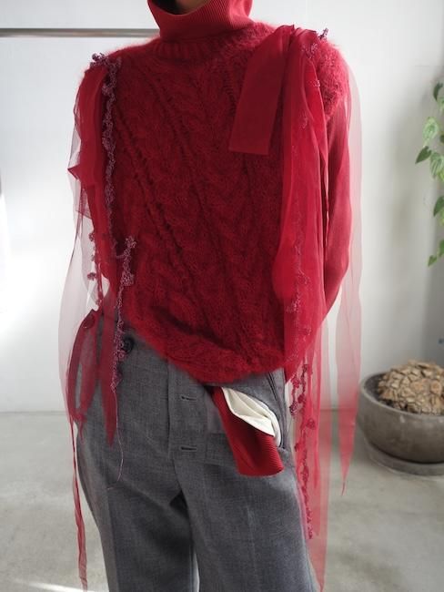 PAULINE DUJANCOURT EVERYTHING IS MOVING HAND KNITTED VEST ・ケーブルニット ・バルーンシルエット ・異素材ドッキングデザイン ・クルーネック ・ネック部分リブ編み ・かぎ針編みの装飾 <カラー> RED <素材> RMSモヘア60%、シルク20%、レーヨン15%、ポリエステル5% *ドライクリーニング表記 <サイズ> XS~S/肩幅41cm、身幅47cm、着丈50cm ・平置きで計測。多少の誤差がでる場合がございます。 ・着用者の身長160cm 【PAULINE DUJANCOURT】ポーリン・ドゥジャンクール/ ロンドンのニットウェアブランド。 パリ出身のポーリンはセントラル・セント・マーチンズを卒業後、SIMONE ROCHAやREJINA PYO、alexanderwangにて経験を積み2022年に自身のブランドを立ち上げた。 かぎ針編みや手編みなどの複雑なテキスタイルプロセスを通じて、現代的なニットウェアへのアプローチを目指している。 ユニークで官能的なドレープやメタリックかぎ針編みの装飾などをブレンドし、ニットピースの再定義を体現している。 PAULINE DUJANCOURT 商品一覧へ <商品の返品交換について> 不良品以外の返品交換はお断りさせていただいています 商品について不安な点などございましたらご購入前にご質問ください 商品に不良があった場合には商品到着後3日以内にメールかお電話でご連絡ください <高額商品のお支払い決済について> 10万円以上の商品をお買い上げ時、代金引換のご利用ができません。 PAYPALもしくは銀行振込がご利用いただけます。 銀行振込をご希望の場合は ご購入希望商品を記載の上、visitfor@gmail.comまでご連絡ください。